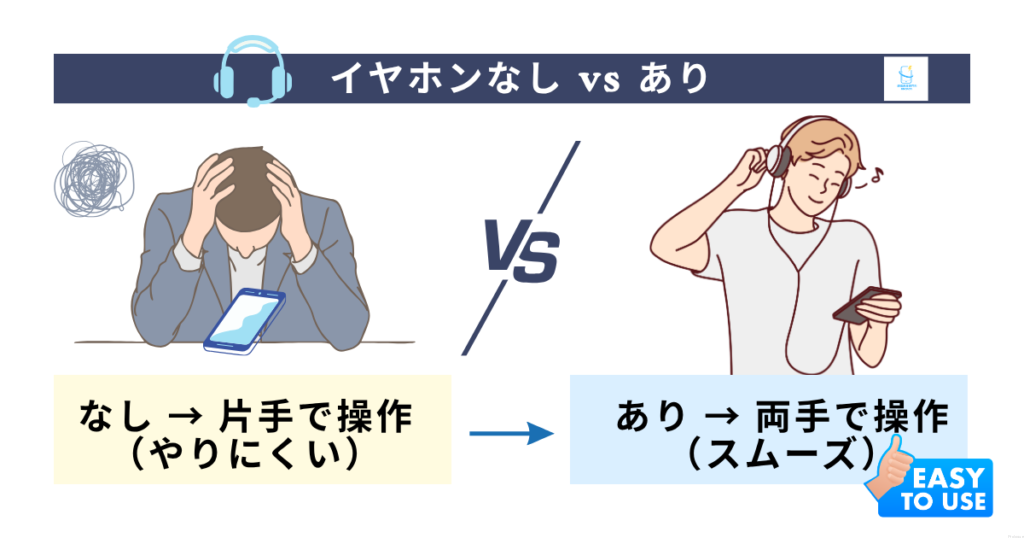 イヤホンを使うと“聞く”と“操作する”が分かれるので、かなりラクになりますよ