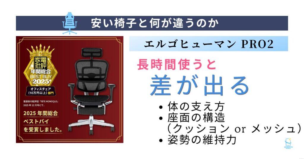 エルゴヒューマンPRO2を選んだ理由や、安い椅子との違いについては、こちらの記事で詳しく解説しています