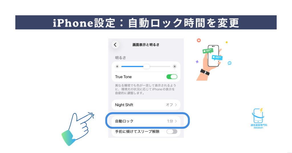 - 設定 → 画面表示と明るさ → 自動ロック